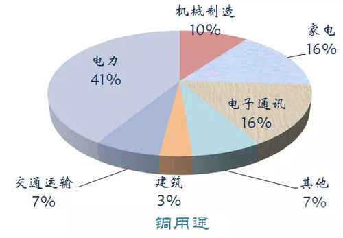 銅是被廣泛應(yīng)用在電力、家電、機(jī)械、建筑、交通、電子通訊等領(lǐng)域。2014年中國銅儲(chǔ)量3000萬噸,產(chǎn)量162萬噸,消費(fèi)1135萬噸。