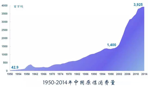 煤炭是中國最重要的能源礦產(chǎn),在能源消費(fèi)中占比一直高達(dá)70%左右,居絕對(duì)主導(dǎo)地位,對(duì)中國經(jīng)濟(jì)發(fā)展具有至關(guān)重要的意義。1950年-2014年,中國原煤消費(fèi)量激增90倍以上。