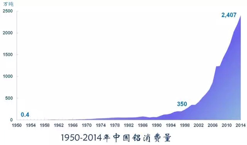鋁是全球消費(fèi)量最大的有色金屬,是目前應(yīng)用十分廣泛的最經(jīng)濟(jì)適用的原材料之一。中國鋁消費(fèi)持續(xù)穩(wěn)定增長,2014年的消費(fèi)量是2000年消費(fèi)量的7倍,是1950年的3400多倍。
