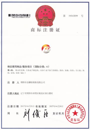 朝陽市金麟鐵精粉有限公司“企業(yè)徽標”商標注冊成功,是公司品牌建設(shè)的重要里程碑,這標志著我公司開始走上品牌發(fā)展之路,真正建立起了走向市場的“名片”,也是公司信譽和質(zhì)量的象征,將促進我們不斷提升服務水平和商品質(zhì)量,公司一直以“開拓創(chuàng)新,精益求精,精細管理,優(yōu)質(zhì)服務”的質(zhì)量方針,為創(chuàng)造強勢品牌和公司可持續(xù)發(fā)展奠定堅實基礎(chǔ)。